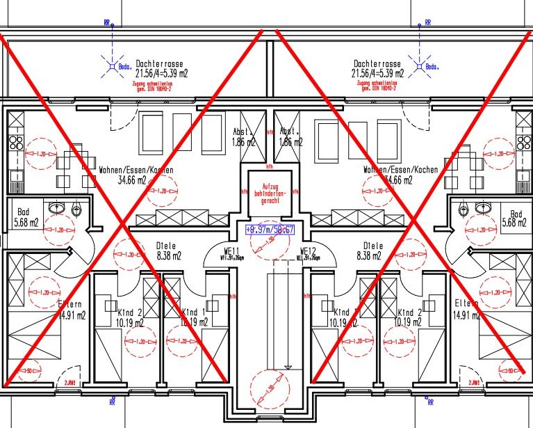 Das Dachgeschoss bietet 4 Wohneinheiten mit jeweils ca. 90 m². Die folgenden Grundrisse geben Aufschluss über die Zimmeraufteilung.